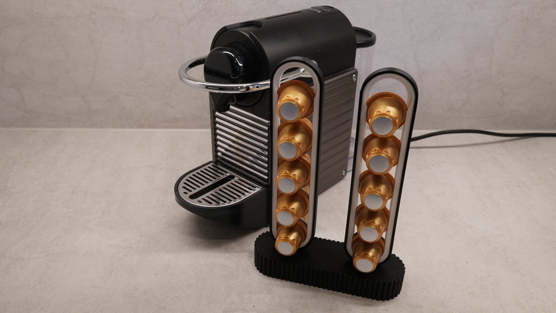 Der Pillar wird im modernen 3D-Druckverfahren aus nachhaltigem PLA gefertigt und ist speziell für handelsübliche Nespresso®-Kapseln konzipiert.