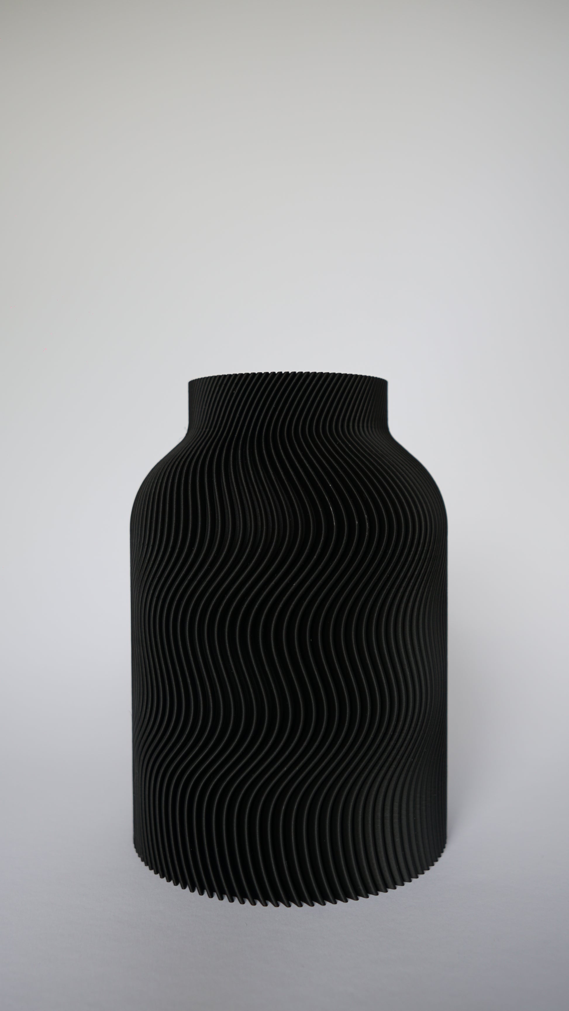 Mit ihren feinen Linien und der eleganten Form passt sie zu jedem Einrichtungsstil – von modern bis skandinavisch. Jede Vase ist ein kleines Unikat, das durch den Schichtaufbau im 3D-Druck ihren ganz eigenen Charakter erhält.