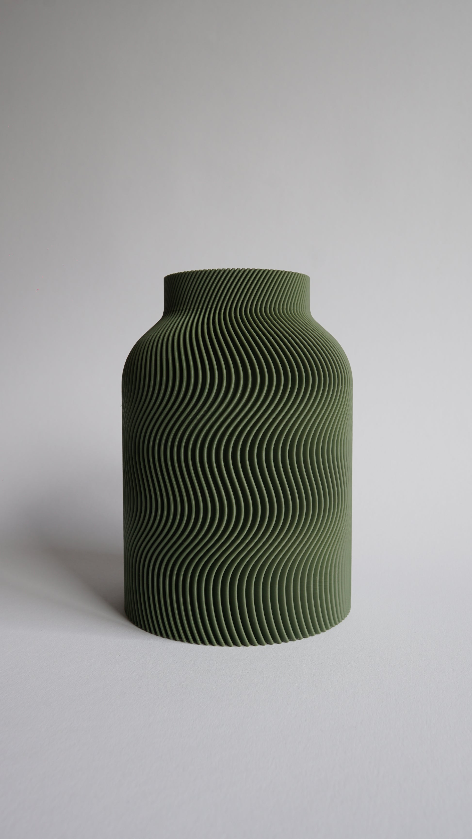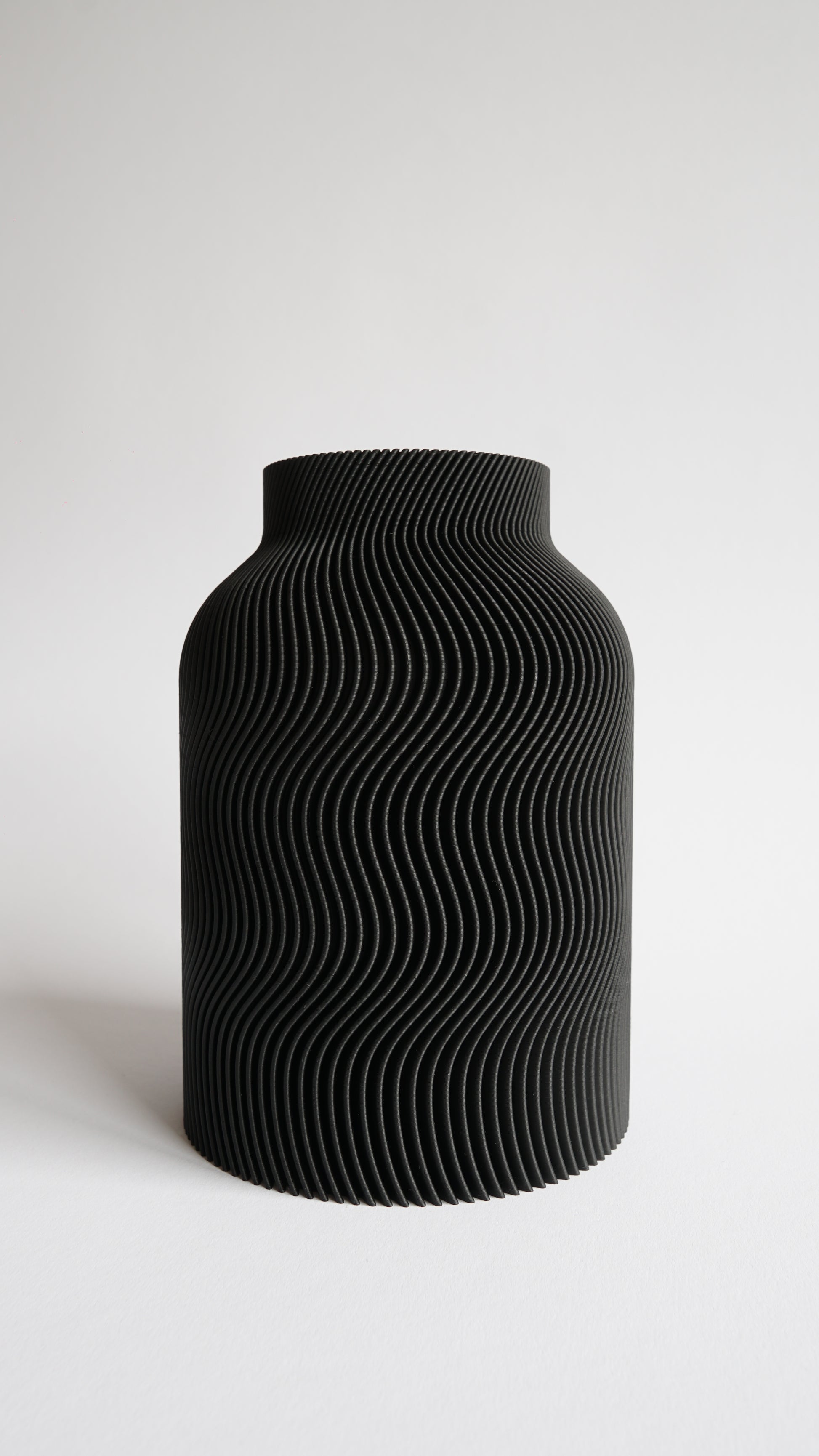Diese Vase wird im modernen 3D-Druckverfahren aus nachhaltigem PLA auf Maisbasis gefertigt und vereint minimalistisches Design mit einer besonderen Haptik.