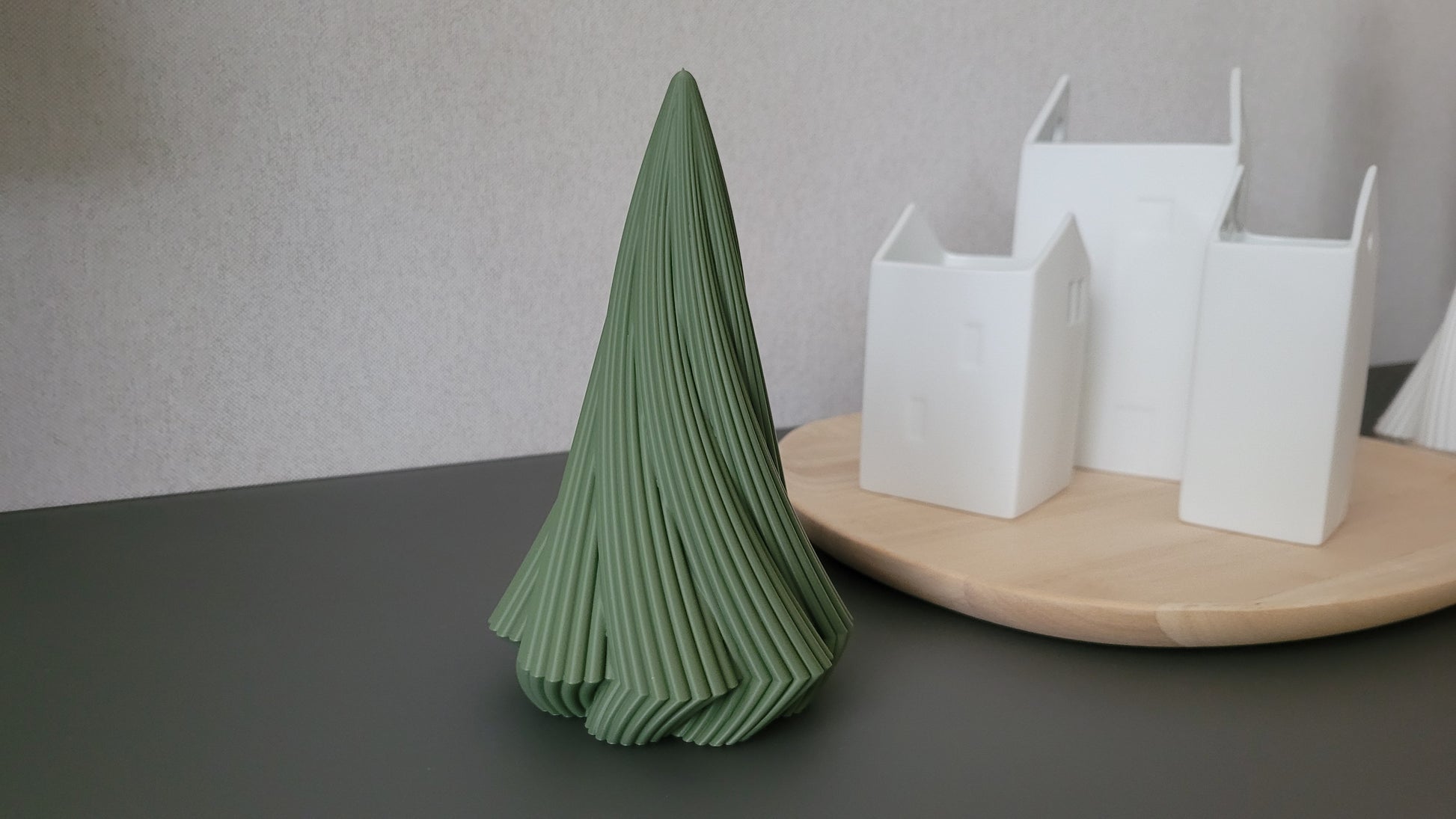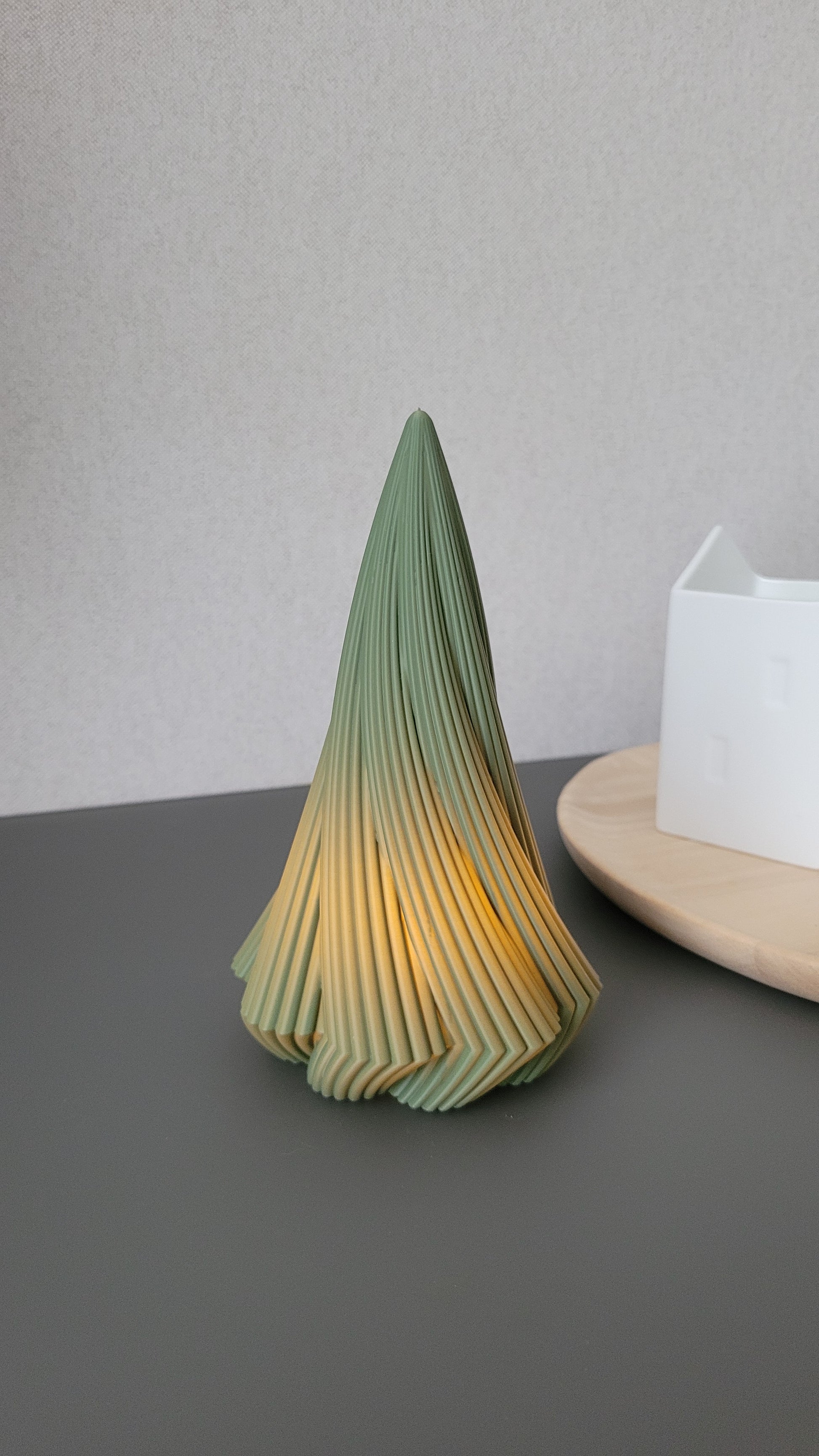 Der Weihnachtsbaum Twister wird im modernen 3D-Druckverfahren aus biobasiertem PLA gefertigt und eignet sich ideal als stilvolles Deko-Element – auch in Kombination mit einem LED-Teelicht. Die Verwendung mit einem echten Teelicht oder in Verbindung mit Feuer ist nicht gestattet.